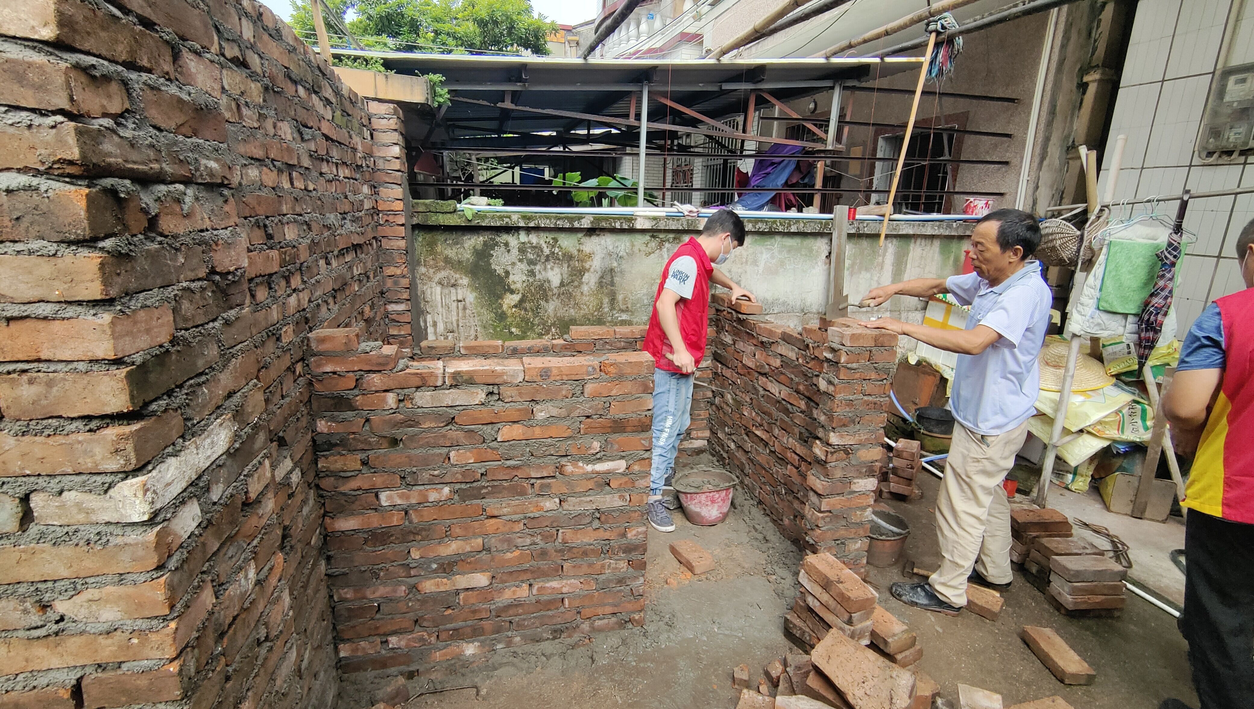 吴阿姨家的外墙主体结构已经完成,水泥干透后就可以扫灰,冲凉房也会在这两天封顶。接下来,社区会继续联系其他共建单位,逐步完善冲凉房的护栏、扶手等,让老人家用起来更方便。