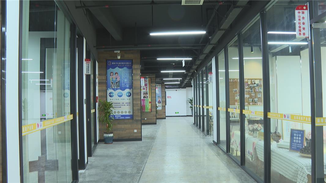 记者曾燕:“这里是中山市‘南粤家政’产业园,目前该园已经吸引了23家家政企业进驻,逐步形成为家政产业品牌聚集地。”