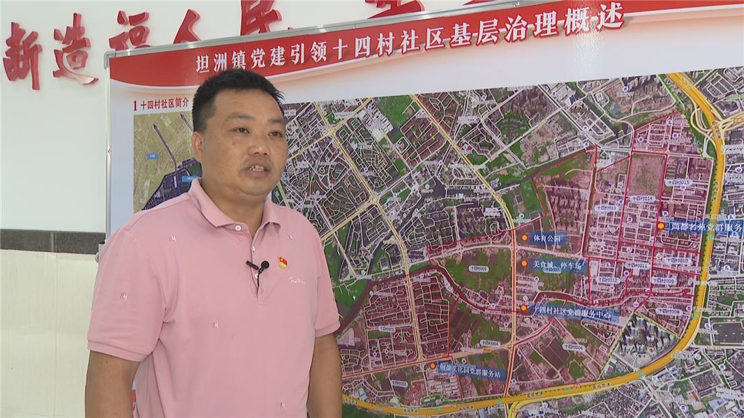 坦洲镇十四村社区党总支部书记梁惠全:“十四村的出租屋大概有1536栋,有时候10万流动人口。我们按照目前出租屋网格化管理,已经分了5个片区中网格,每个中网格里有10个小网格,由我们驻村干部、公安分局人员、村工作人员,日常负责出租屋的治安、消防、环境卫生、人员信息录入等各方面工作。”