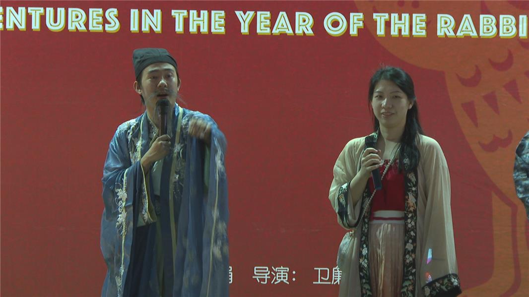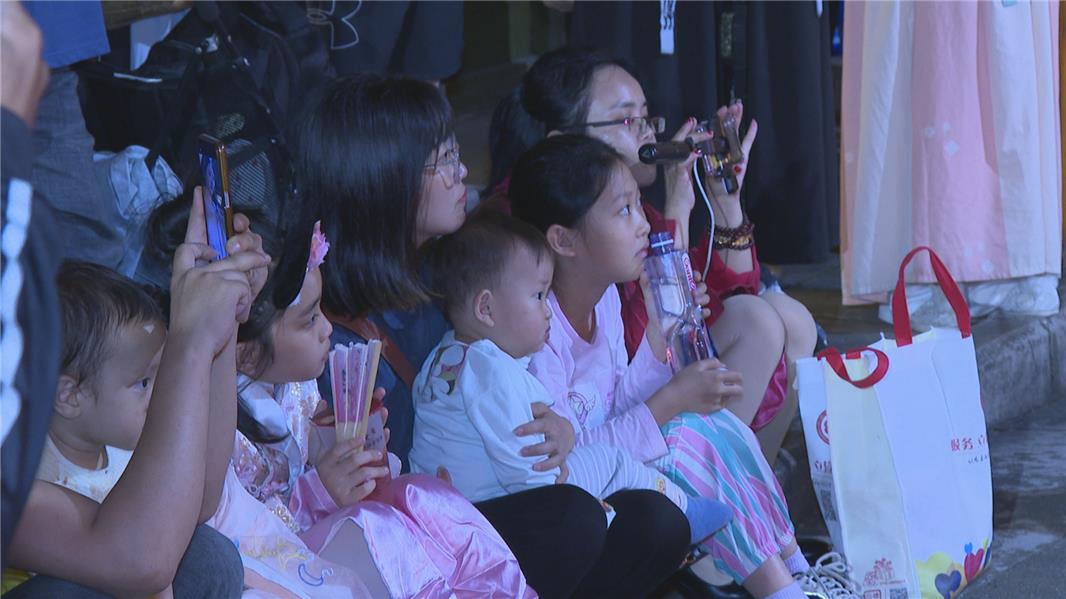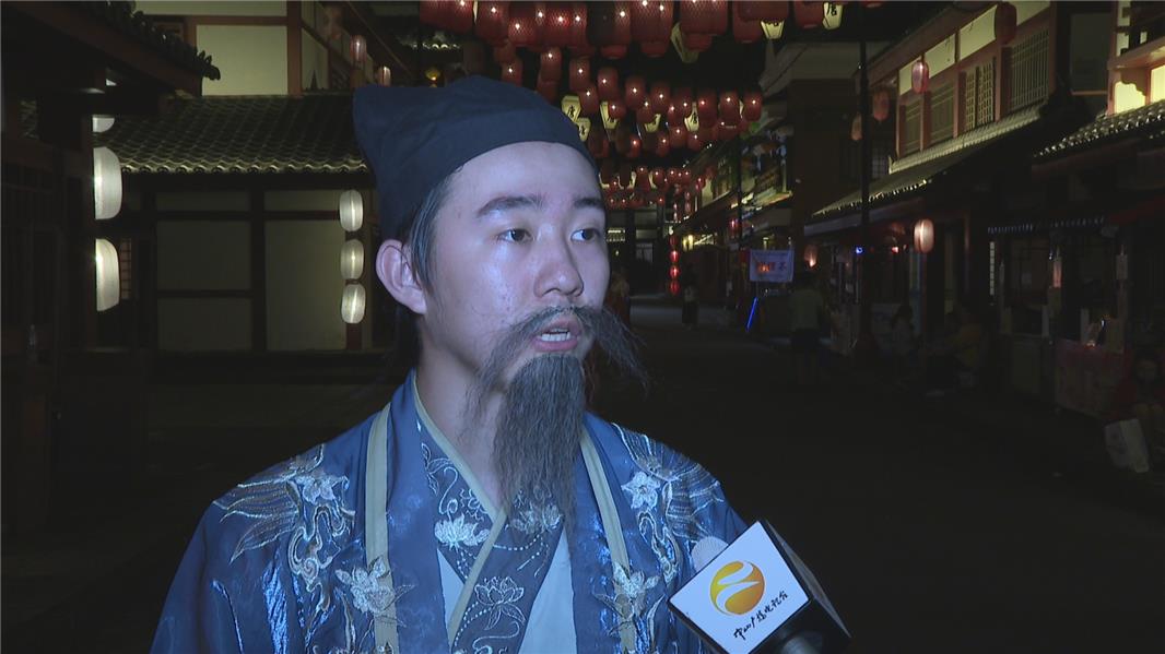 游客叶小姐:“我穿汉服来的,比较喜欢这种汉服文化,氛围很好 ,这里又有集市又有吃喝的,还有古风地方可以玩游戏、拍照等,挺好玩的,我从下午待到现在都还没走,比较有烟火气的感觉。”