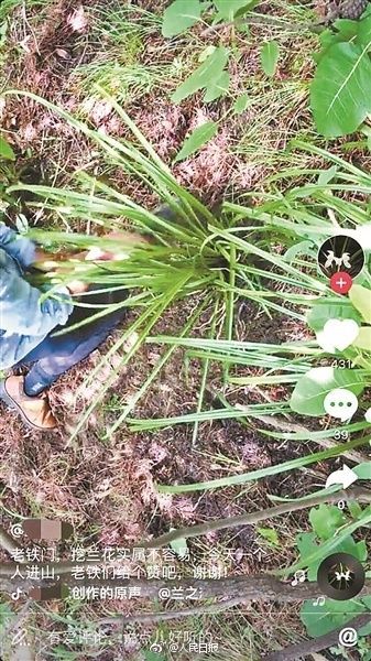 另有人选择在抖音上录制到山上挖野生兰花的视频,然后留下了微信号“拉生意”。