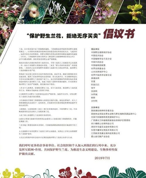 7月16日,国家林业和草原局在其官方微博发布了一份关于“保护野生兰花,拒绝无序买卖”的倡议书。据介绍,倡议书由中国野生植物保护协会、中国花卉协会、中国植物学会兰花分会等16家单位联合发起,包含部分互联网公司。