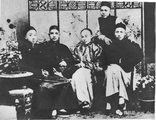 前排自左至右:杨鹤龄、孙中山、陈少白、尤列。此四人过从甚密,常相聚抨击时弊,鼓吹勿敬朝廷,被称为“四大寇”。