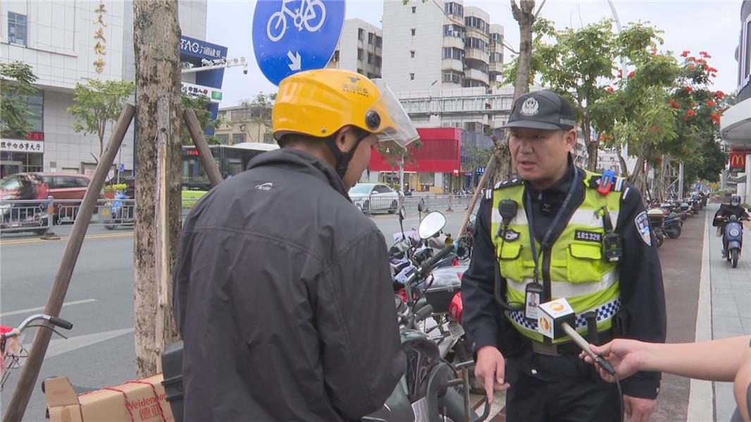 上午,在假日广场的周边路段,记者见到大部分摩托车、电动自行车都能规范、整齐地停放在停车线内,但仍有个别车主将摩托车停在了线外的绿道上,执勤交警马上上前对车主进行劝导。