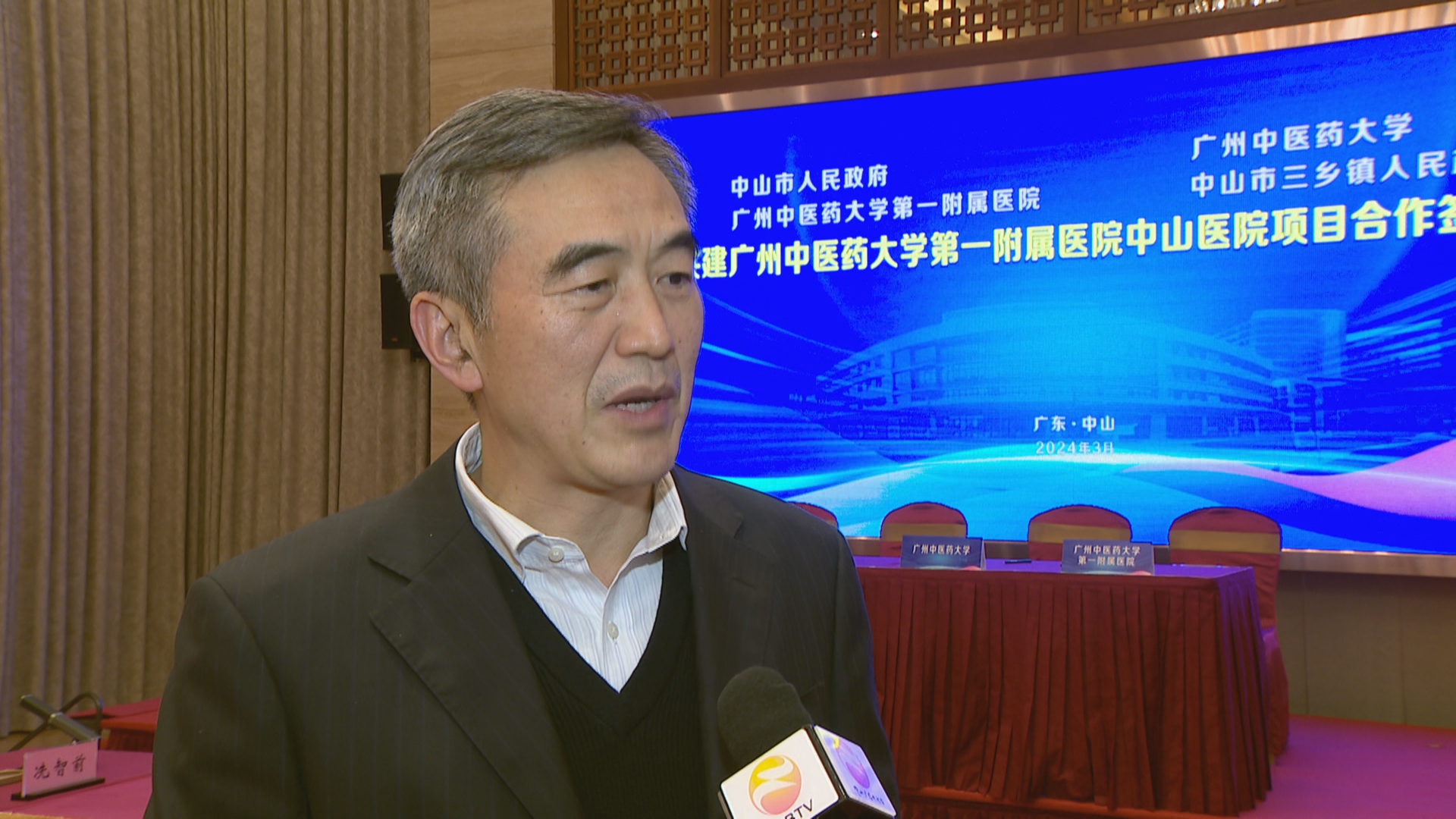 广州中医药大学第一附属医院院长李俊:“要实现这个就是建立现代医院管理制度,把我们一套成熟的管理办法平移到这里来,相当于我们管理、品牌、人才 、技术、文化几个平移,和我们总院同质化发展,目标就是实现把它打造成高水平的综合性的中医院。”