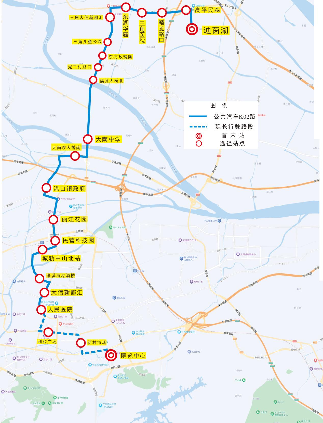 一、优化调整K02路为“博览中心-迪茵湖”