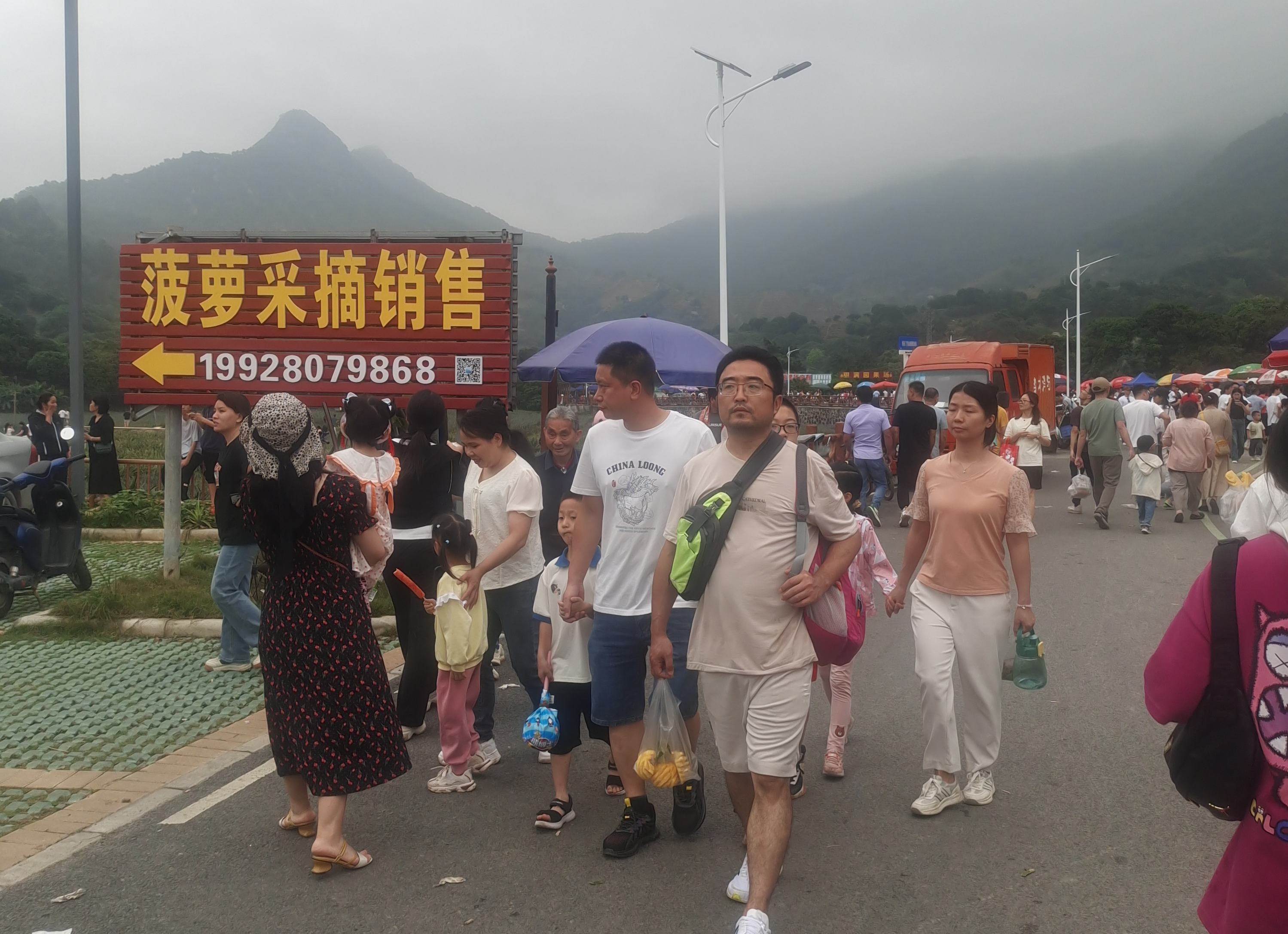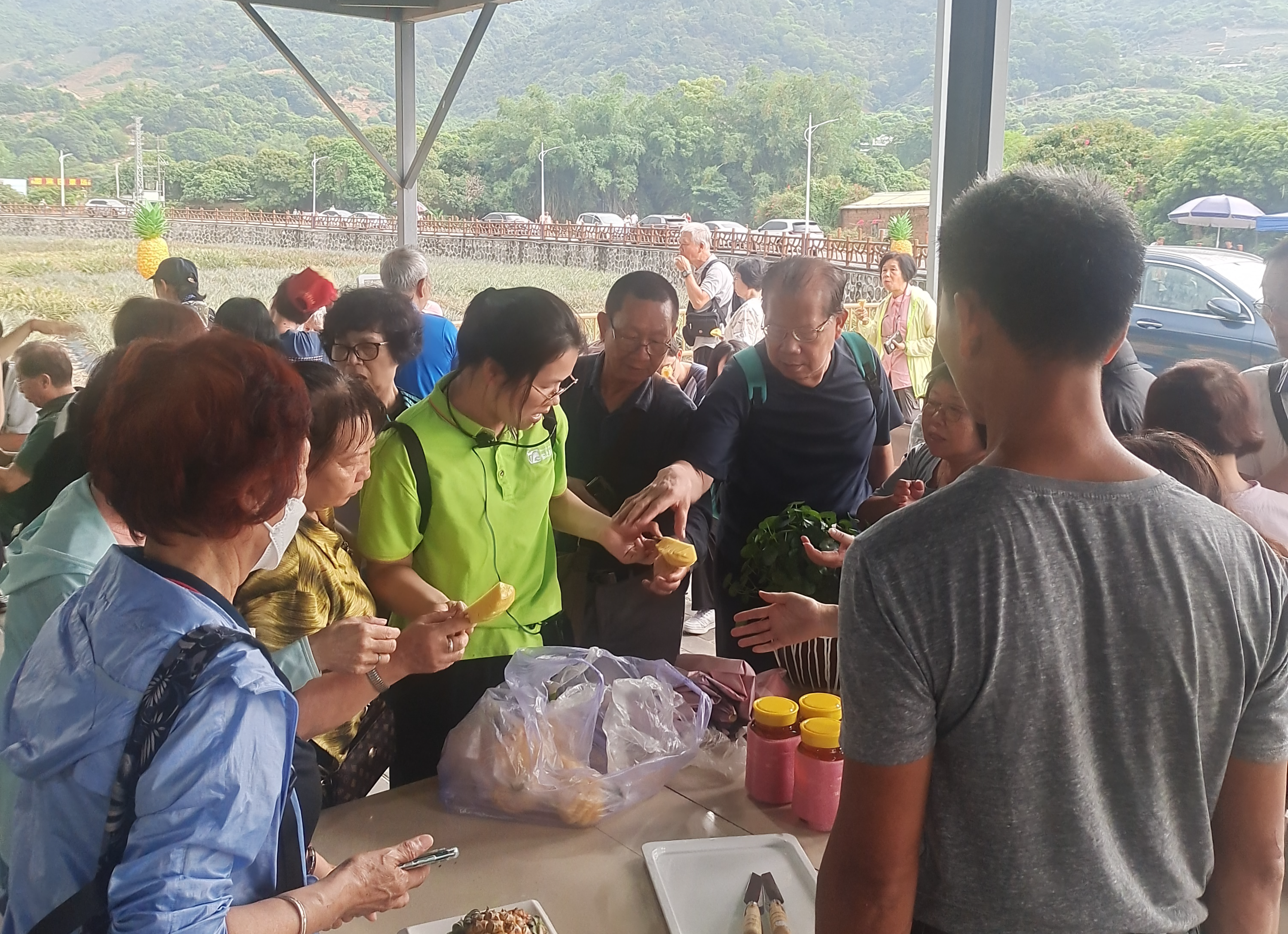 神湾镇大果园农场负责人李标:“游客人数起码增加了五六倍,菠萝再多都没有剩的,扫光了,我们每一批大约出4000个菠萝,大约10000斤,一批十天卖完,一天卖出1000斤左右,没有试过这么好卖,以前卖100斤菠萝开心得不得了,现在卖1000斤菠萝,觉得没什么奇怪的。”