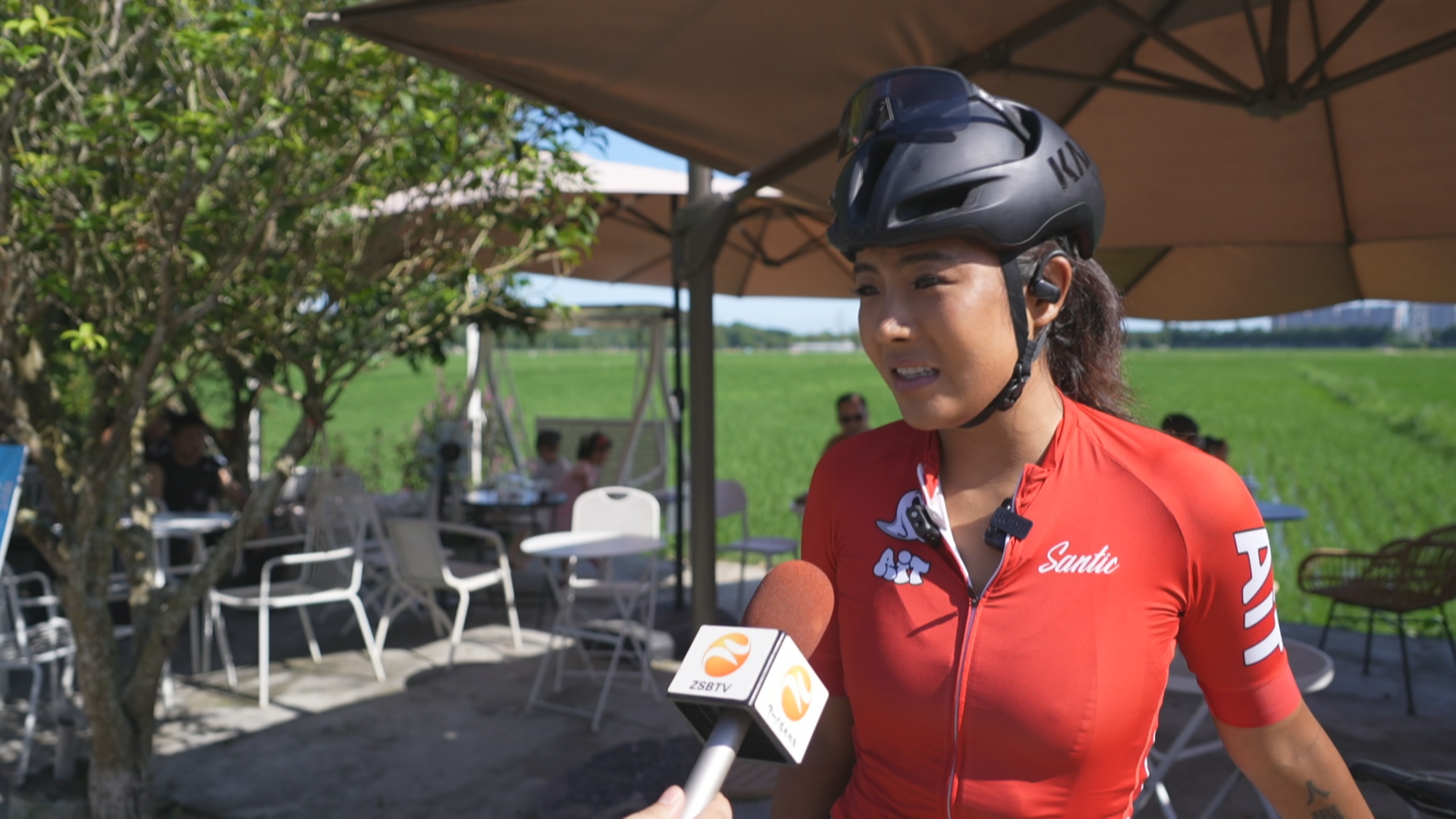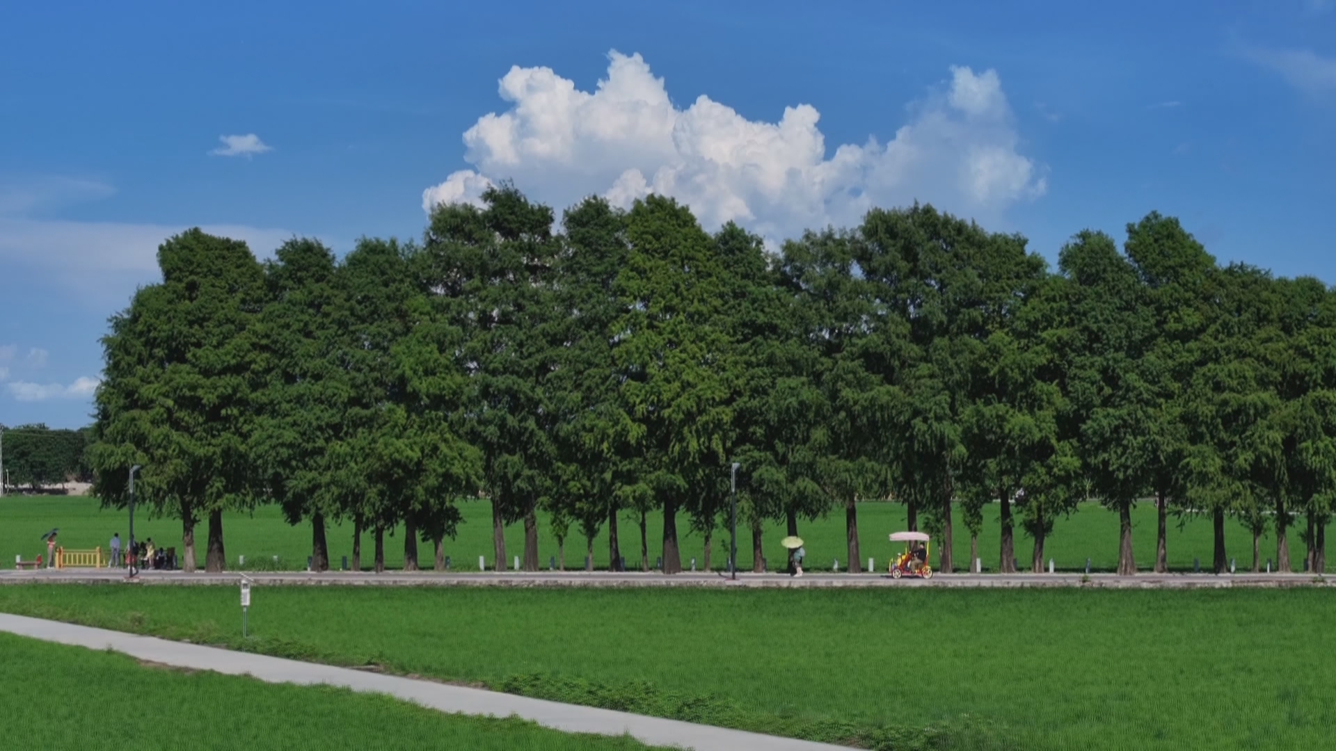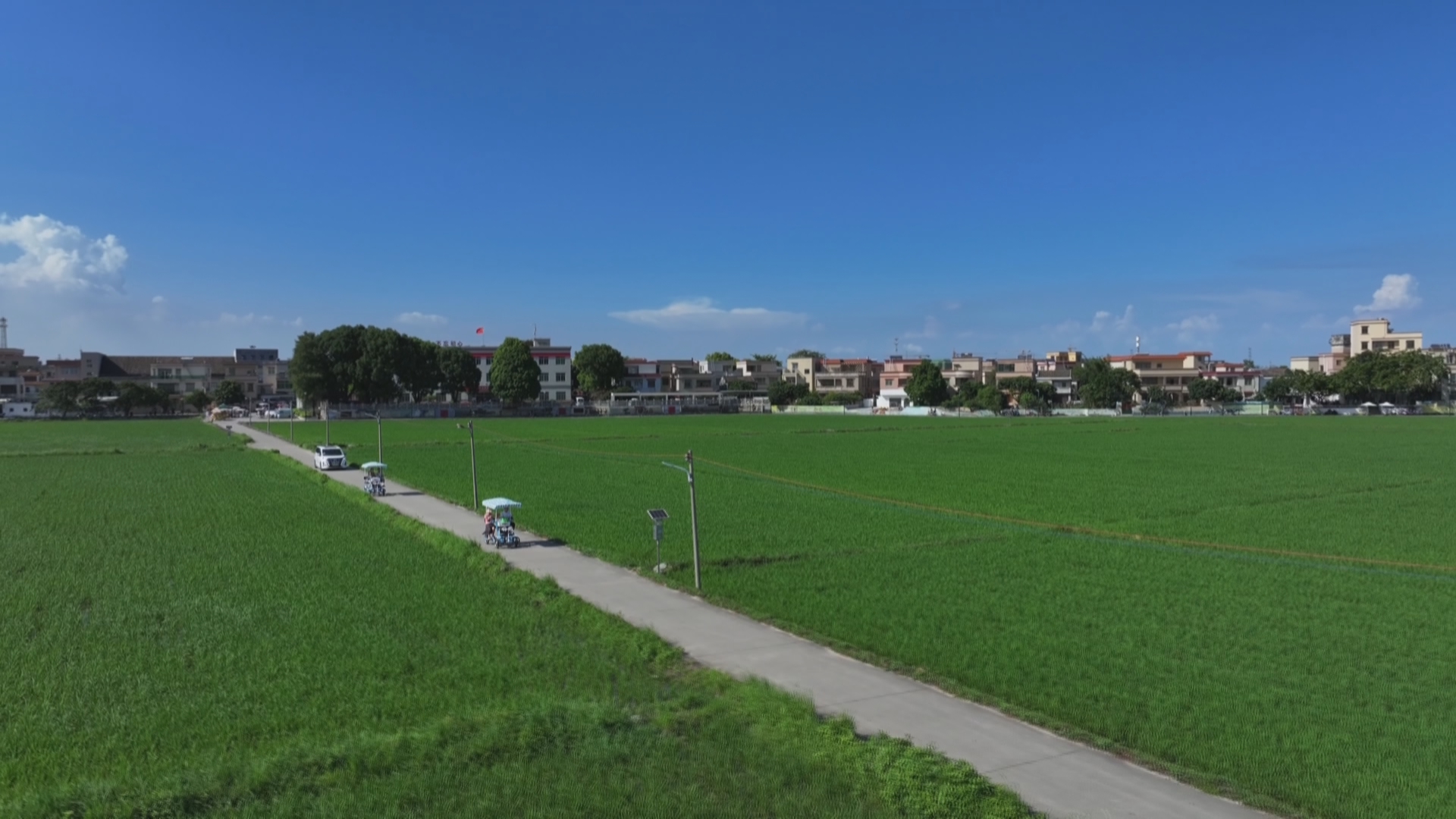 广州游客宋小姐:“我们在广州南沙,骑行了大概一两小时,进来这个村子的时候就闻到稻草的香味了,挺稀奇的感觉,平时比较少见,而且天气很好,绿色、蓝天,就觉得很舒服,很治愈。”