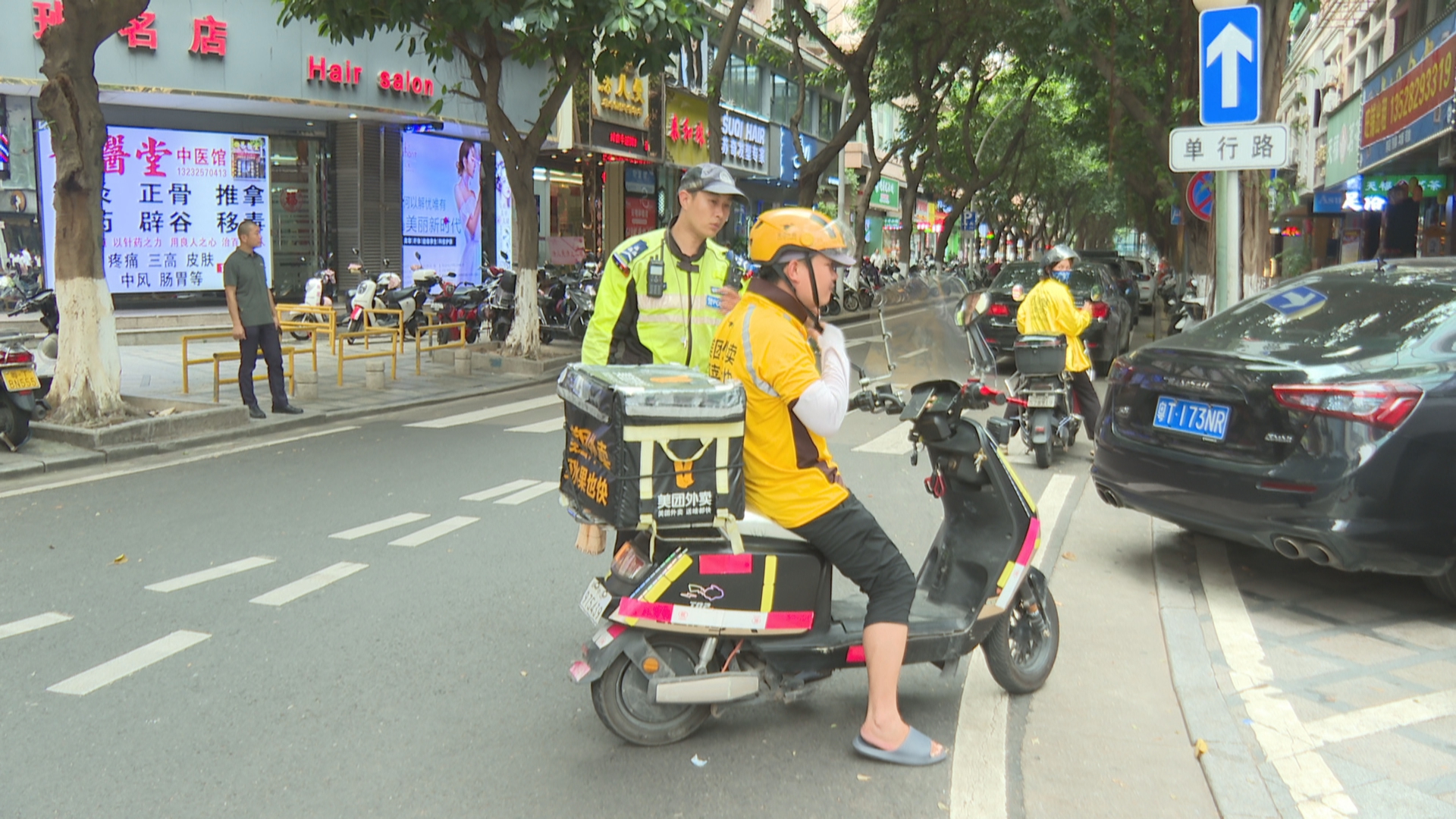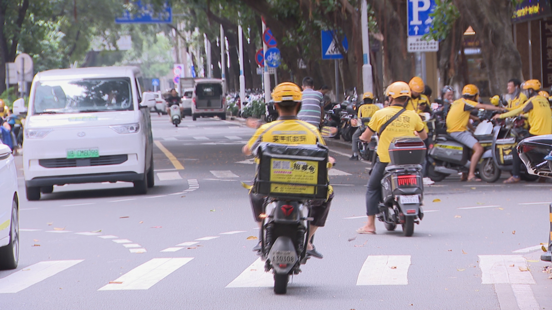 中山市公安局交警支队城区大队东区中队民警李永航:“在主要的路口、商圈,我们对配送人员有针对性地进行督促、查处,呼吁配送人员不闯红灯、不超速、不随意变道,做一个遵守交通法规的优秀的配送人员。”