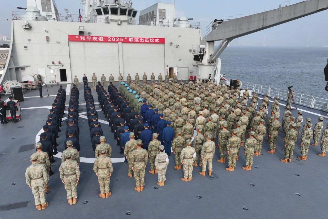 根据年度军事合作计划,10月15日至23日,中马两军将在马来西亚及其附近海域举行“和平友谊—2025”联合演习。今天上午,中方参演部队分别从湛江、三亚、香港三地军港出征,通过海上输送方式前往马来西亚。