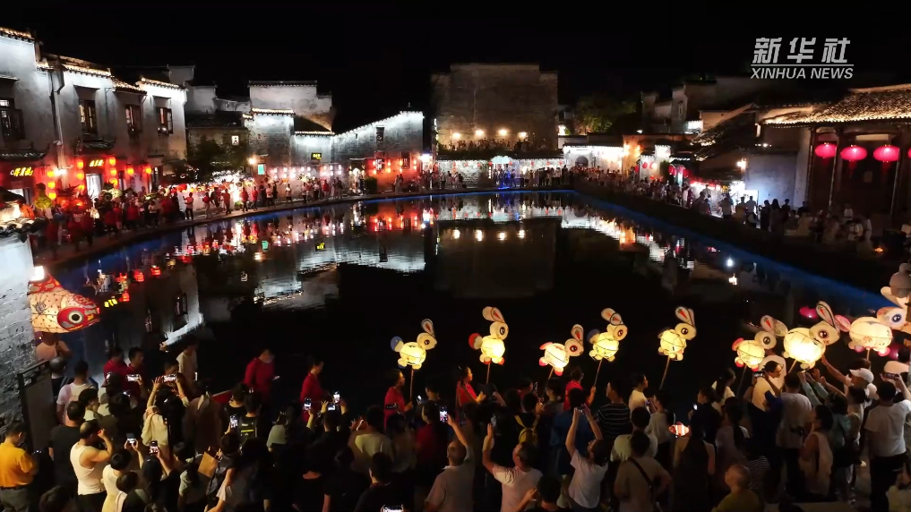 在世界文化遗产地安徽省黄山市黟县宏村,流光溢彩的花灯巡游会在月光下璀璨上演,吸引众多游客前来游玩体验。近年来,宏村依托“闹灯会”等民俗,重点打造夜游经济,持续提升夜间消费市场活力。