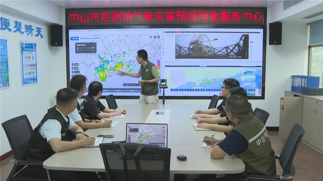 中山市气象局预报员李毅恒:“我们强化了省、市、镇三级协同天气会商机制,实现气象防灾减灾前哨岗的功能,我们有气象专业人员每天在中心值班,提供每天两次的坦洲天气预报服务,并且在灾害性天气,比如台风、暴雨这些天气的时候,我们加强值守和跟市气象台加密会商。“