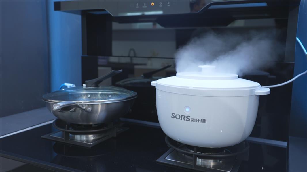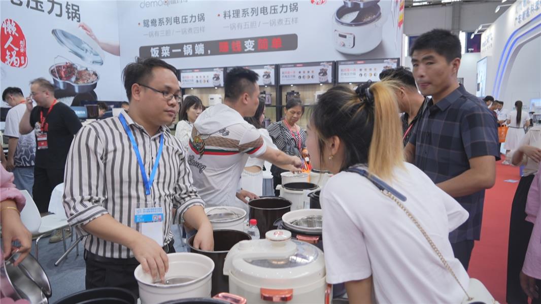 本次展会场地面积有3万平方米,共设置5个展馆,超3.5万人次的买家到场,各个厂家也拿出自己最新的抽油烟机、电冰箱、电烤箱等智能厨电产品及配套品种集体亮相展会。这个可以同时煮“四菜一汤”的电压力锅,就吸引不少买家关注。