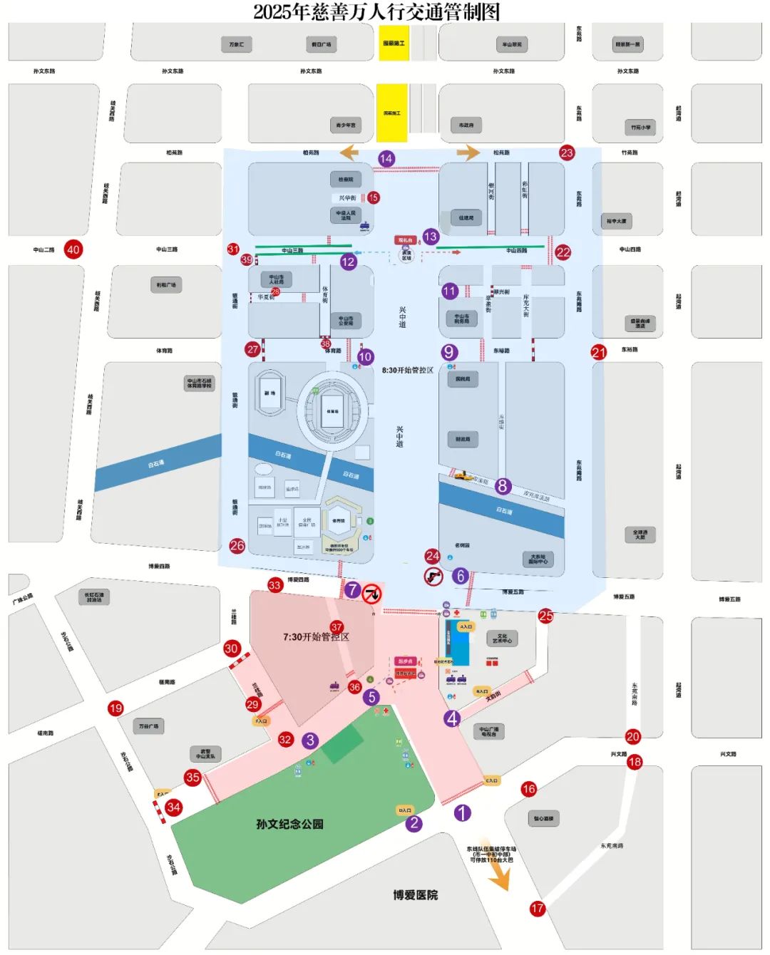 2025年(第38届)慈善万人行将于今日上午10时开始巡游。今年万人行的活动主题为“助力‘百千万’,博爱伴你行” ,巡游总人数预计1.5万人。活动起点设在兴中道文化艺术中心对出城桂路路段,终点则是兴中道与中山路交界路口,巡游队伍将从兴中道东西两侧同时出发向市人大方向行进并在兴中道与中山路交界路口的答谢台进行表演和答谢。为保障活动期间道路交通安全畅通临时交通管制将在活动当天上午7:30开始,预计中午12:00结束。